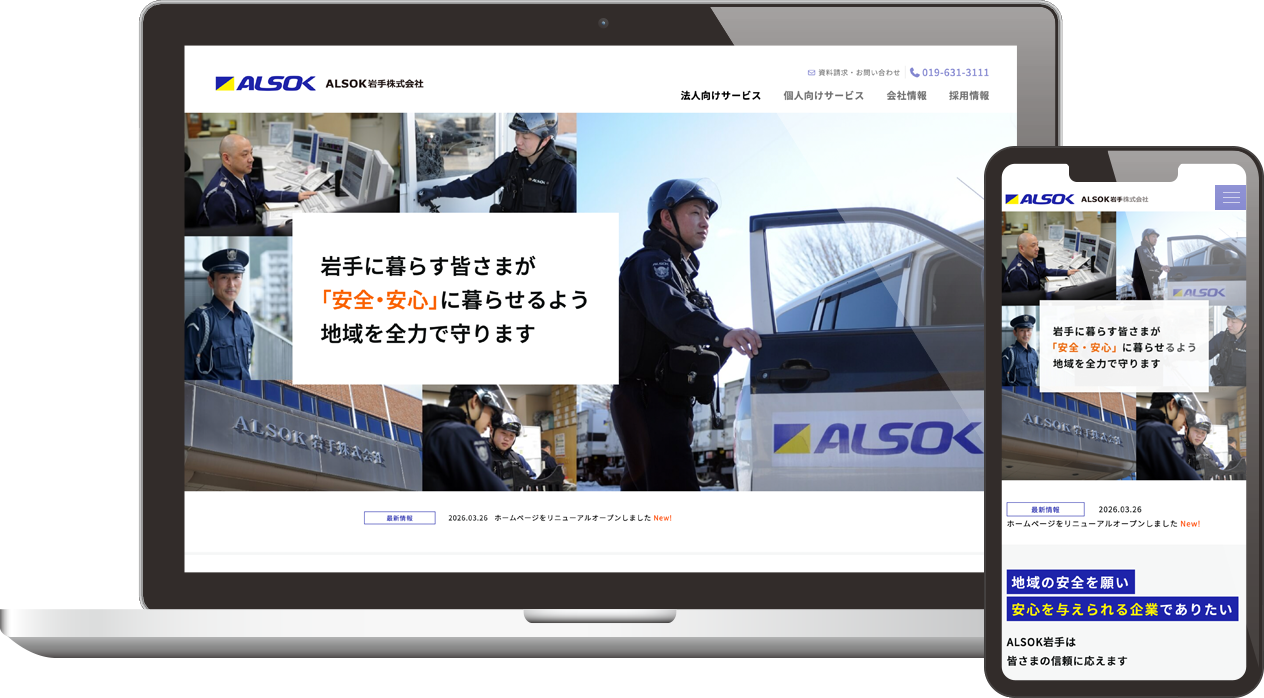 この度、ALSOK岩手株式会社様のホームページをリニューアルいたしました。